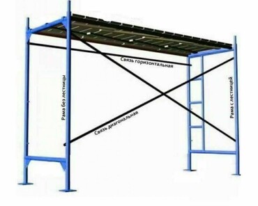 В комплект одной секции входит: рамка с лестницей, рамка без лестницы, горизонтальная связь (минус) и диагональная связь (крест).