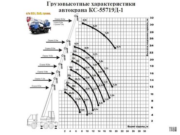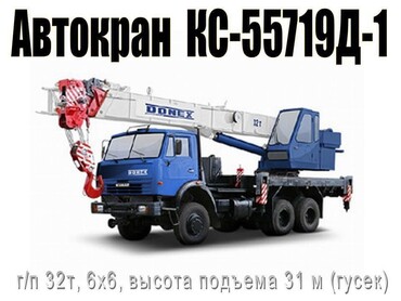 Автокран КС-55719Д-1 (г/п 32 т, КАМАЗ-53228Е2, 6х6, 3-х секционная стрела 23 м, гусек 7,5 м высота работы автокрана до 31 м, 5-и опорный (зона работы на 360 град.), телескопирование с грузом на крюке, стрела - высокопрочная сталь Sigma 700 Wеldox (Швеция). Работа контура при мин. оборотах ДВС (экономия топлива).